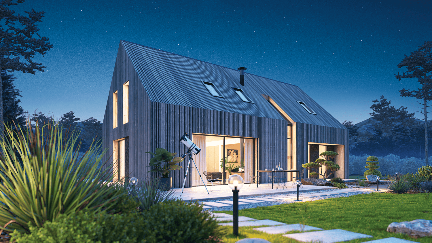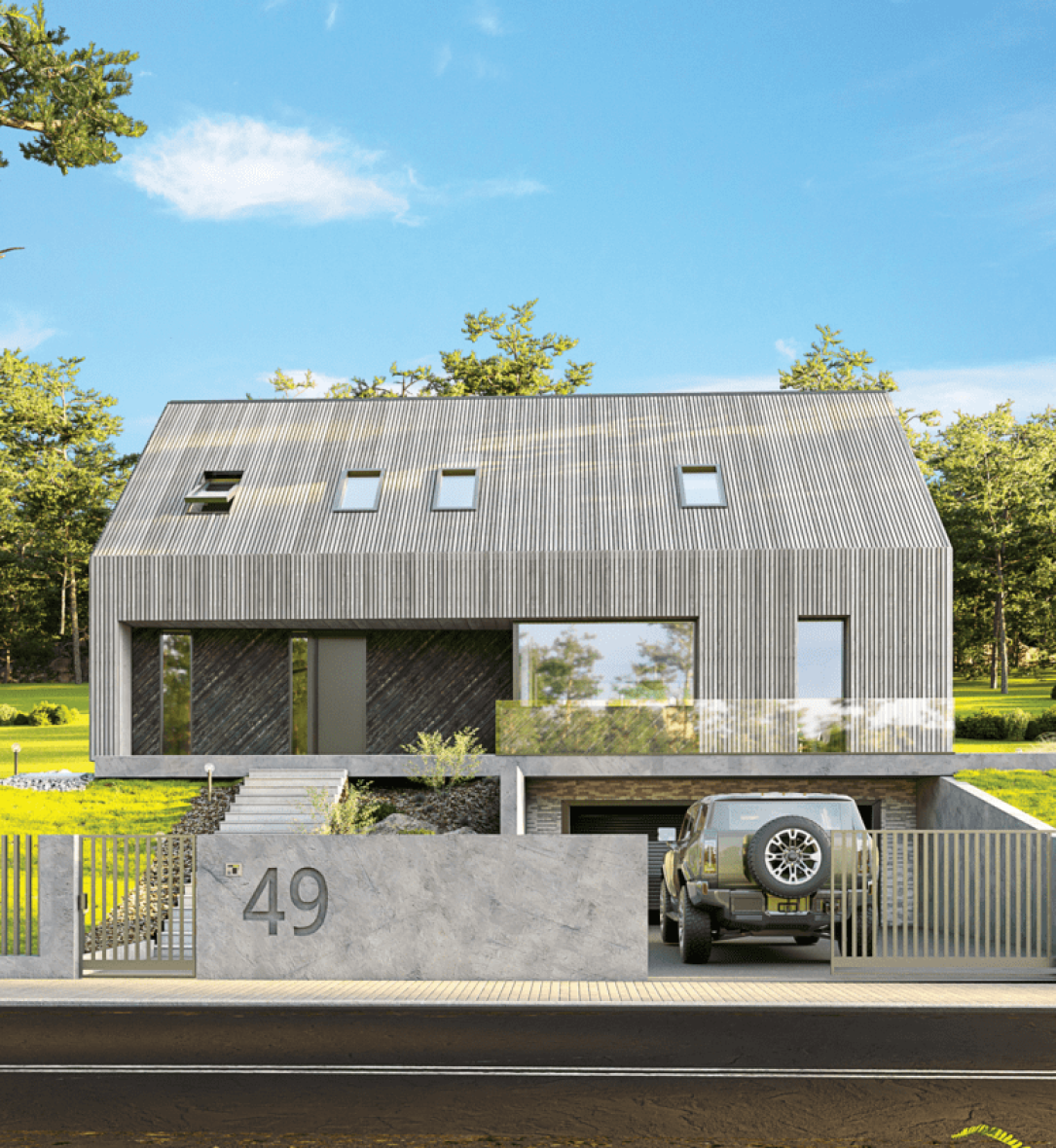 Surowe, konstrukcyjne elementy betonowe zostały zrównoważone ciepłym modrzewiem syberyjskim na elewacji. Razem tworzą jasne, nowoczesne zestawienie, które idealnie wpisuje się w siedliskową zabudowę położonej pod Gdańskiem miejscowości Kolbudy. Poza ciekawym projektem zależało nam też na wysokich walorach użytkowych obiektu. Dlatego zdecydowaliśmy się na takie pomieszczenia, jak garderoba, spiżarnia czy pralnia.